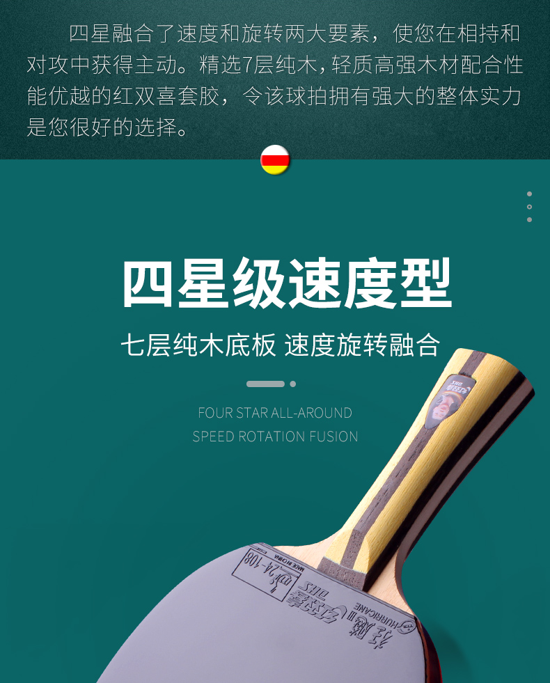 红双喜乒乓球拍四三星专业级狂飙3横拍小学生专用兵兵乓球拍套装