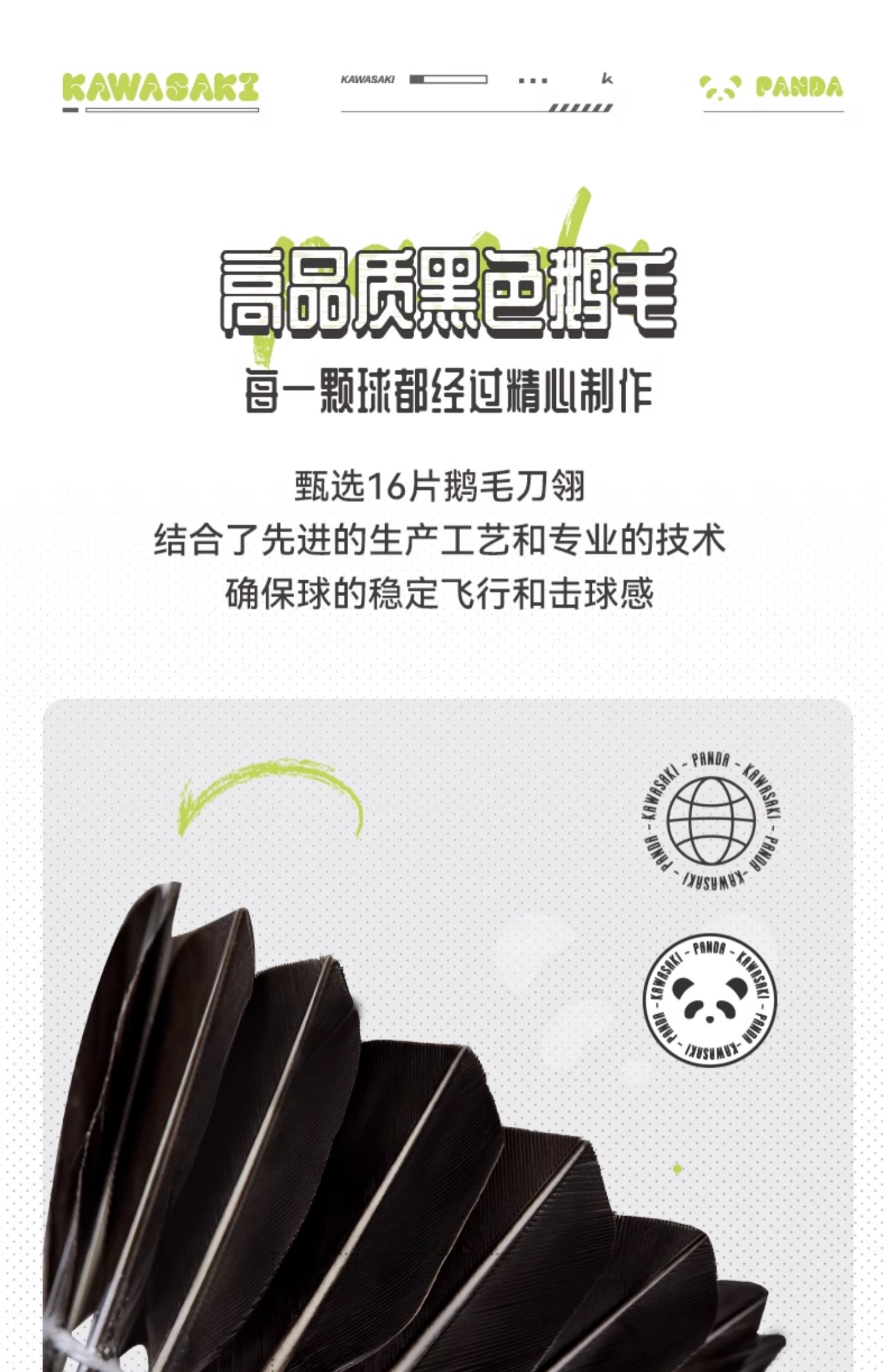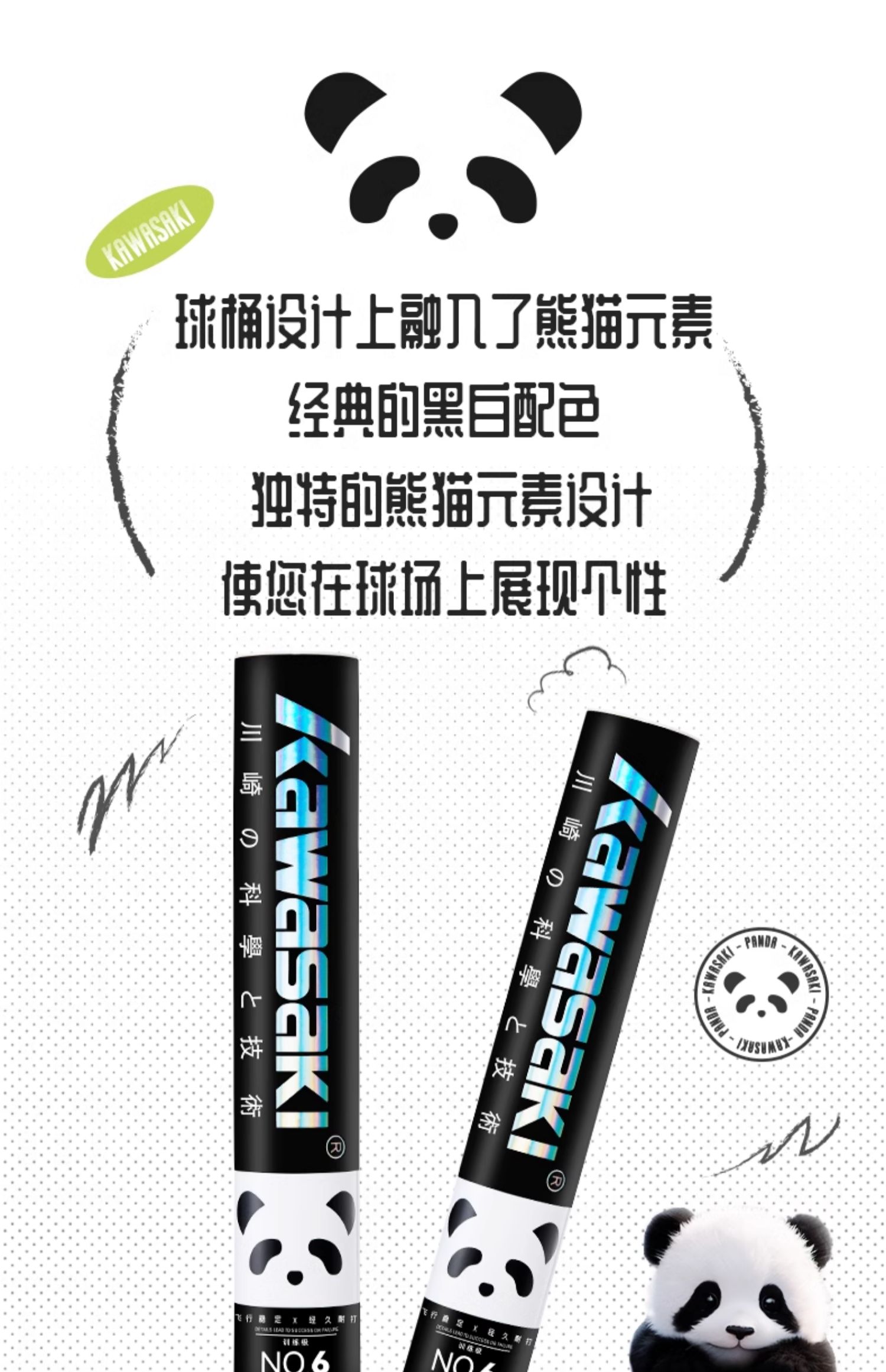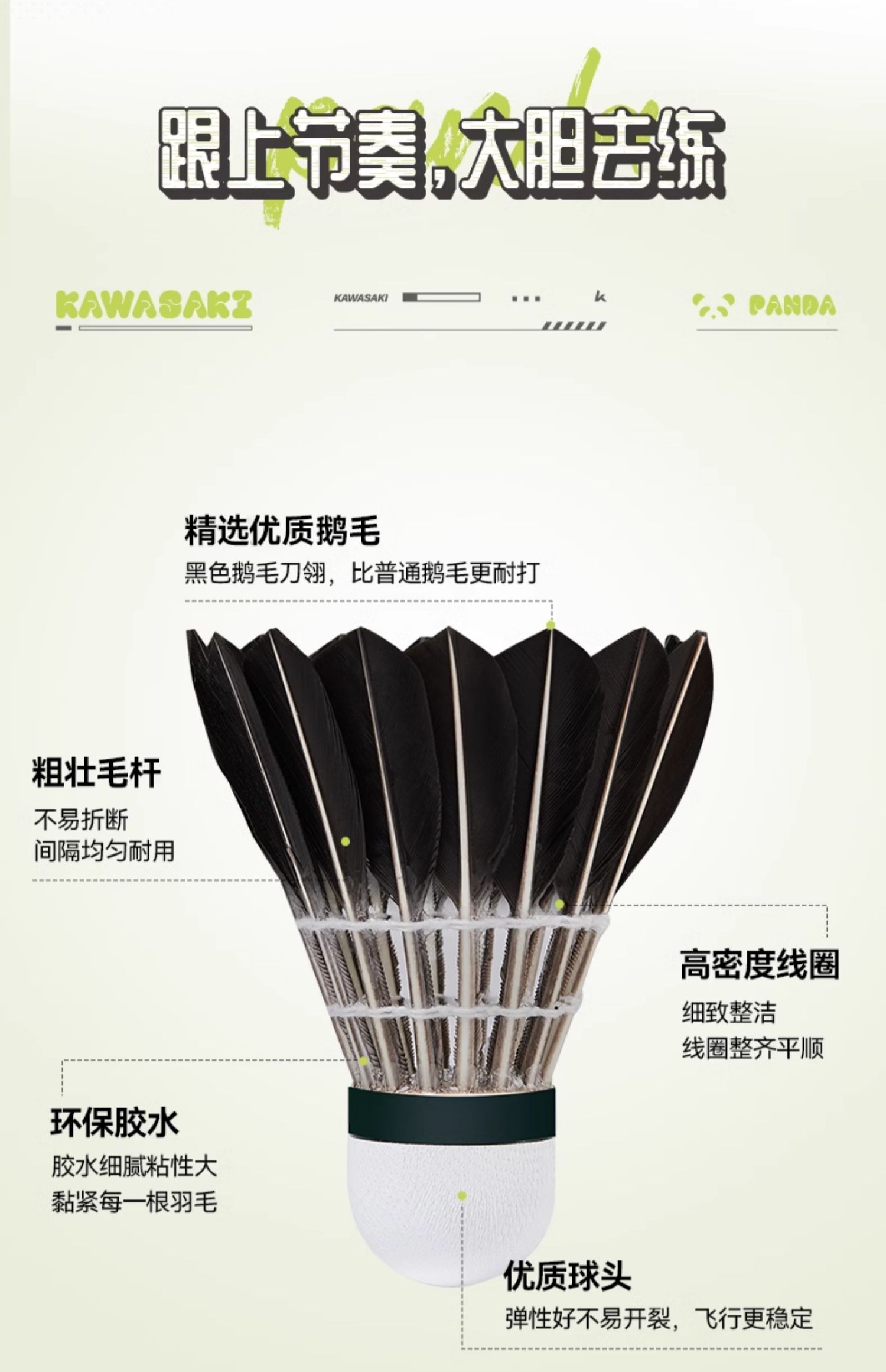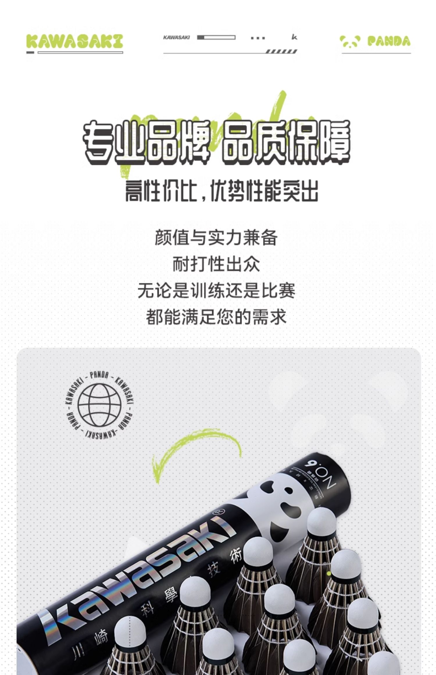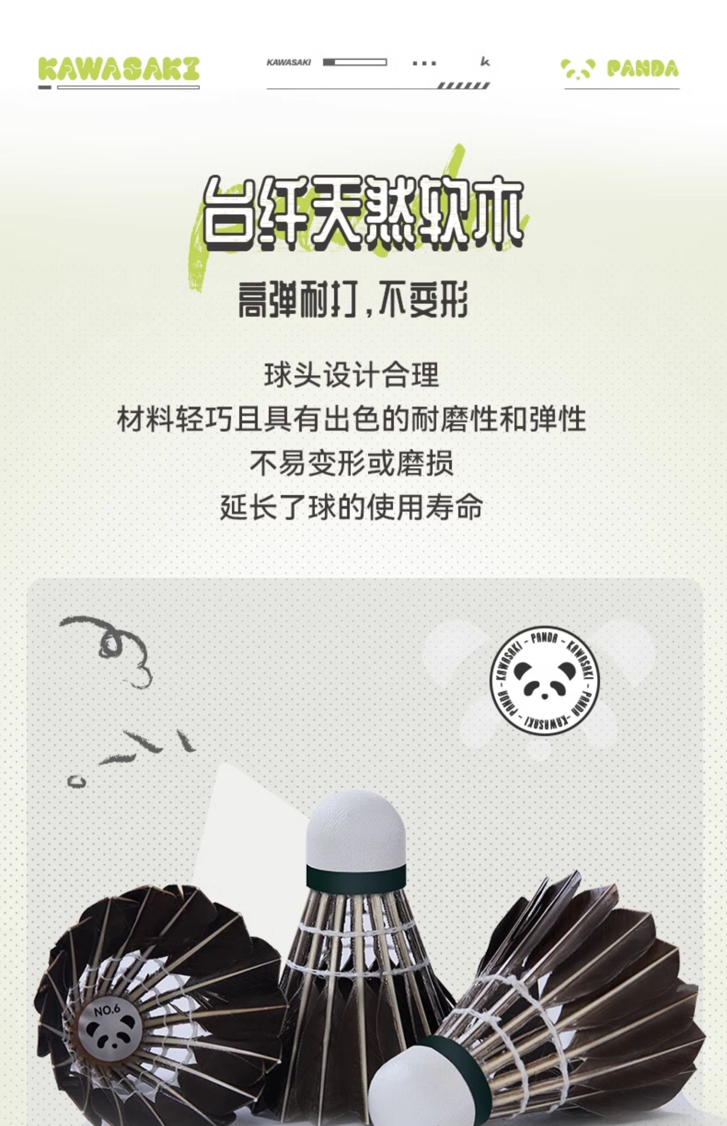kawasaki川崎羽毛球耐打训练级初学训练用球耐打王室内外专业熊猫